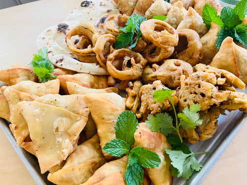 2 Samosa's topped with your choice of Curry, fresh local farm grown lettuce, cucumber, cabbage, carrots, tamarind chutney & yogurt mint-cilantro chutney