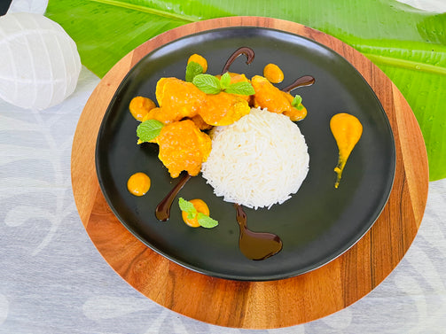 Tender chicken breast pieces marinated in a tandoori masala mix. spices & herbs, roasted and cooked in a mild creamy-butter sauce