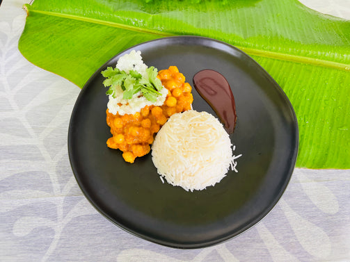 Soft chickpeas cooked with a house made chole masala sauce enriched with selective herbs